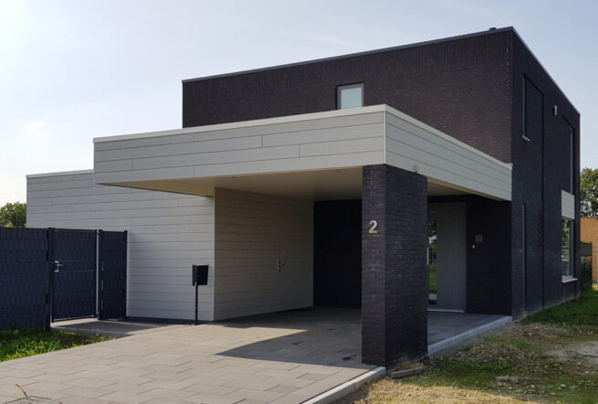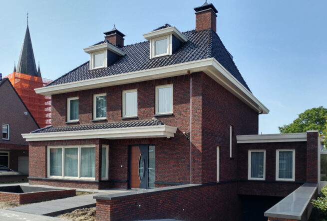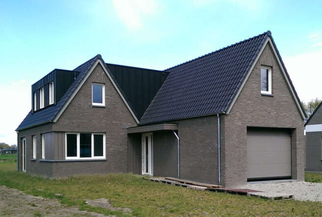 Aan de straatzijde refereert het beeld aan een kleinschalige boerderij met kap. Achter dit volume zit een verbindingszone die eindigt in de hoofdleefruimtes die als een paviljoen in de tuin staan. De tuin ligt op het noorden maar door de versmalde verbindingszone ontstaat er ruimte voor een pui op het zuiden en door de lage kap kan de zon ook dit deel goed bereiken